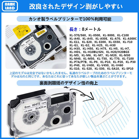 互換 ネームランド テープ 9mm カートリッジ 透明 XR-9X XR-9WE XR-9RD XR-9BU XR-9YW XR-9GN 黒文字 白赤黄青緑 強粘着 6色の1セット カシオ Casio Nameland KL-M7 KL-SP10用 ASprinte