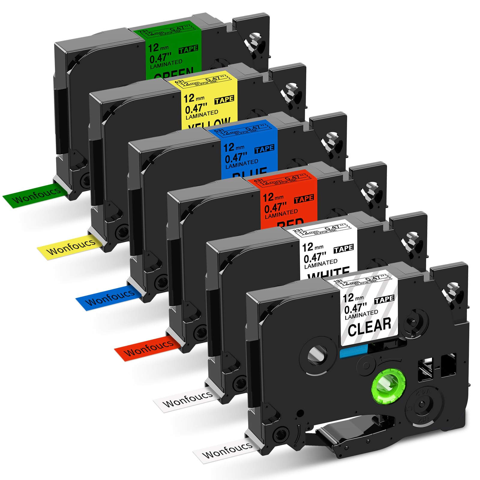 12mm 白透明赤黄靑緑 黒文字 ラミネートテープカートリッジ cubeキューブ用 TZe-131 TZe-231 TZe-431 TZe-531 TZe-631 TZe-731 6色の1セット,ブラザーBrotherと互換性のある ピータッチP-Touch用