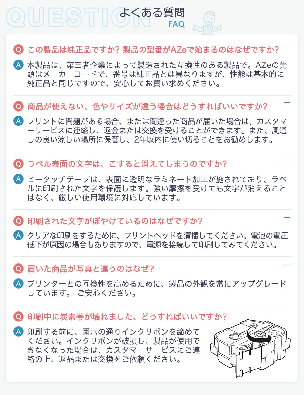 - [ ラベルライターに使用 ]: PT-J100,PT-J100W,PT-J100P,PT-J100SL,PT-P300BT,PT-P710BT,PT-P910BT,PT-170,PT-160,PT-120,PT-180,PT-250BG,PT-250BY,PT-2500PC,PT-1500PC,PT-PC,PT-240,PT-24,PT-9500PC,PT-9300PC,PT-9200PC,PT-D210,PT-190,PT-12,PT-18N,PT-18R,PT-D600,PT-2730,PT-P700,PT-P750W,PT-2430PC,PT-P900W,PT-P900W,PT-9700PC,PT-9800PCN及びその他ブラザーピータッチシリーズ機種.