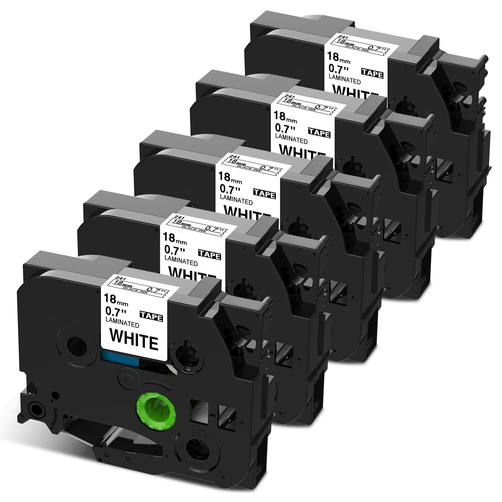 18mm 白地黒文字 ラミネート Pタッチテープカートリッジ TZe-241 TZe241 ラベルライター 8M 5個セット,ブラザーBrotherと互換性のある ピータッチP-Touch用
