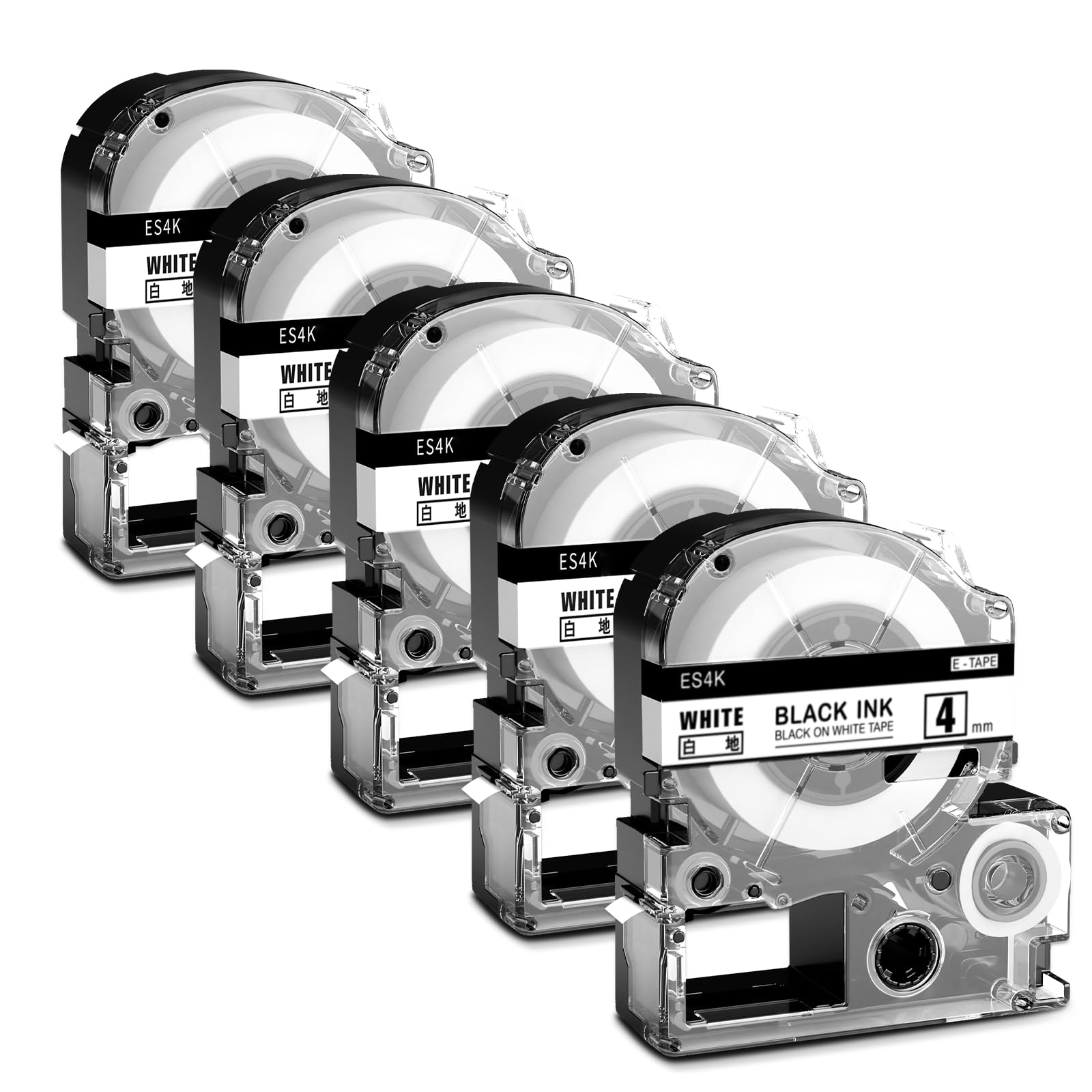 5個 互換 テプラ テープ 4mm 白地黒文字 ES4K と互換性のある キングジム テプラ テープ カートリッジ テプラPRO Kingjim tepra用 (SS4K) 8M ASprinte
