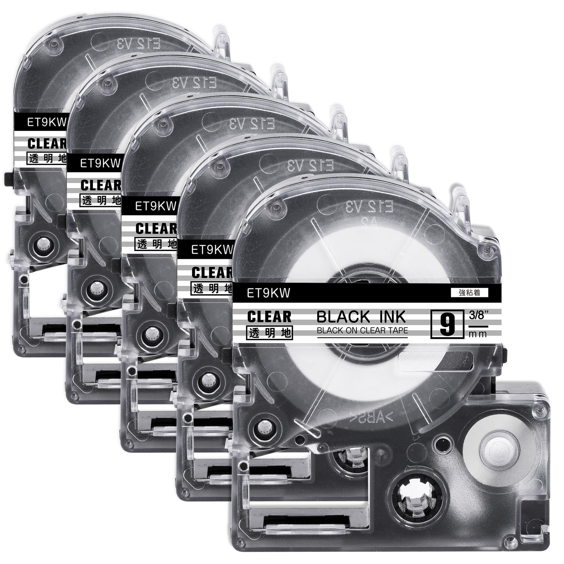 5個 互換 テプラ テープ9mm 透明地黒文字 ET9KW と互換性のある キングジム テプラ テープカートリッジ テプラPRO Kingjim tepra用 (ST9KW) 8M ASprinte