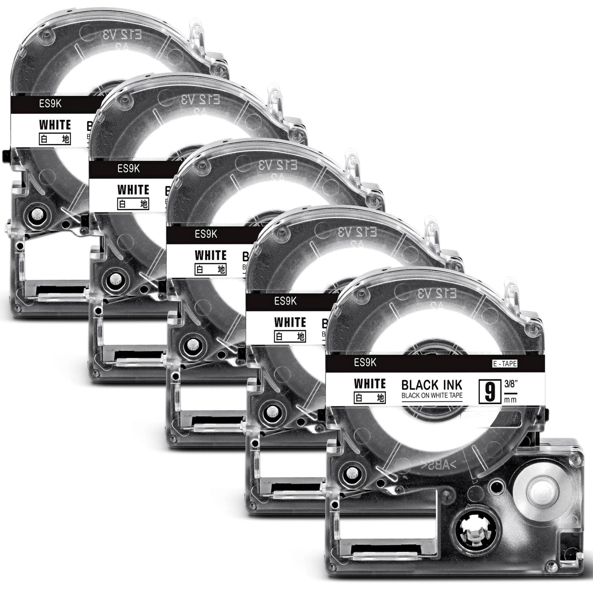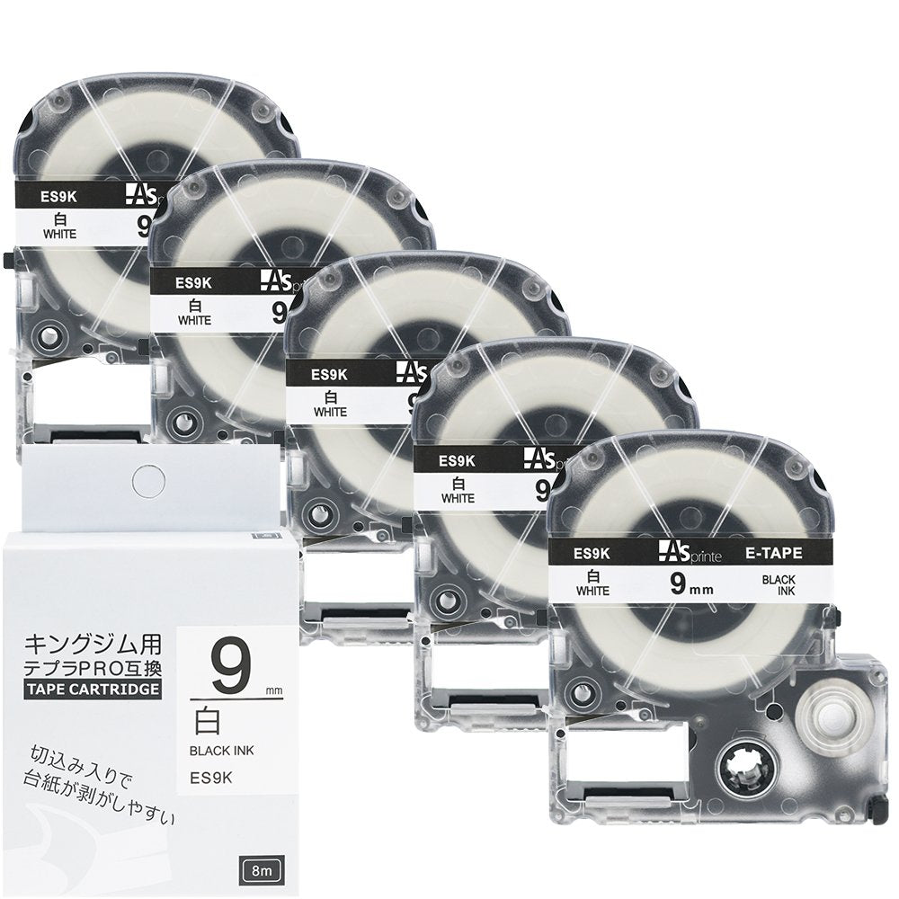 5個 9mm 白地黒文字 ES9K テープカートリッジ と互換性のある テプラ テープ 白 黒文字 (SS9K) キングジム Kingjim tepra テプラpro ラベルライター用 sr150 sr170 sr750 sr5900p 8M ASprinte